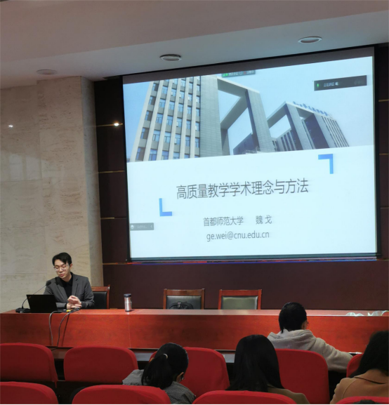 在高质量教学学术的学理分析基础上,魏老师给出了三个高校教师研究的案例,深入浅出的给老师们分享了如何开展教学研究,尤其是高质量教学学术的5A标准是什么:1.你对周围世界是“敏感的”(aware)2.你搜集的资料是“合适的”(appropriate)3.你的解释是“充分的”(adequate)4.你的分析论证是“清晰的”(articulate)5.你的结论是“可取的”(advisable),让与会者深受启发。他通过跟听众互动,从听者提出的研究现象“大学生入学专业选择与择业意愿不一致”,一步步引导大家思考高质量教学学术的步骤:1.我到底要研究什么?(研究问题聚焦)2.我到哪里了解情况?(研究地点选择)3.我使用什么方式了解情况?(研究工具设计)4.我怎么处理收集到的资料?(初步分析资料)5.我如何得出结论?(进行理论对话)6.我如何形成文字?(撰写论文发表)。听者进入到该研究情境,共同经历了如何界定研究问题、如何操作化概念、如何选择研究方法等过程,受益匪浅。