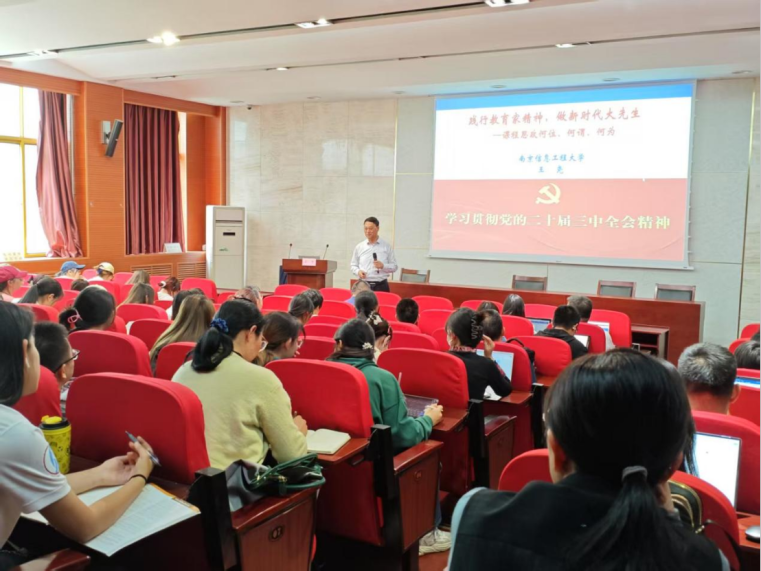 为着力构建“课程思政”育人新格局,促进教学工作实现知识教授、价值引领的有机统一,2025年5月8日,学校在千佛山校区教学三楼3153举办专题报告。南京信息工程大学原党委副书记副校长王尧应邀担任主讲嘉宾,举行题为“弘扬教育家精神,做新时代大先生——课程思政何位、何谓、何为”学术报告。活动由教师教学发展中心主任贾斐主持,有关学院(部)分管教学副院(部)长、课程思政示范课程负责人、中青年教师,以及部分教育硕士和师范专业本科生参加了报告会。本次活动由教师教学发展中心、教务处、党委宣传部联合举办。