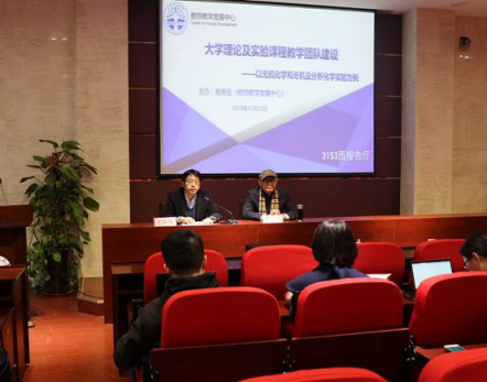 为进一步加强我校本科教学团队建设,提高教学质量,丰富教学活动,教务处(教师教学发展中心)于11月22日下午在千佛山校区教学三楼3153西报告厅开展专题培训活动,山东大学化学与化工学院宋其圣教授受邀担任本次培训的主讲嘉宾,他的报告题目为“大学理论及实验课程教学团队建设—以无机化学和无机及分析化学实验为例”,校级教学团队的团队负责人及部分成员共计70余人参与本次活动。活动由教师教学发展中心主任王新华主持。