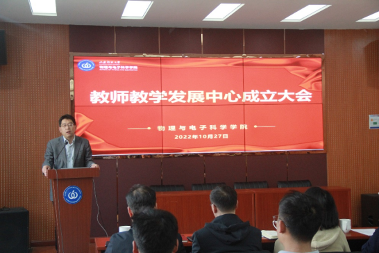 为进一步促进教师专业成长,打造教师发展共同体,加强基层教学组织建设,10月27日下午,物理与电子科学学院在文澜楼F347举办学院教师教学发展中心成立大会。学校教师教学发展中心主任王新华、教师发展科科长潘婷,学院党委书记谢德仁、院长蔡阳健,副院长宋玉志、任俊峰,校院两级教学督导委员会成员,青年教师和学生代表参加活动。成立大会由任俊峰主持。