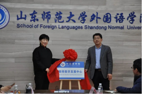 学校教师教学发展中心(教学质量评估中心)主任王新华和外国语学院院长王卓为外国语学院教师教学发展中心揭牌,表达了对外国语学院教师教学发展中心后续工作的殷切期望。