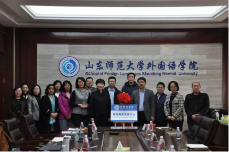 2月28日下午,外国语学院在文渊楼A区313会议室举行院级教师教学发展中心座谈会暨揭牌仪式。山东师范大学教师教学发展中心(教学质量评估中心)主任王新华、科长潘婷,外国语学院院长王卓、副院长王金娥,以及各系部主任、副主任、专业负责人及骨干教师出席会议。会议由王金娥副院长主持。