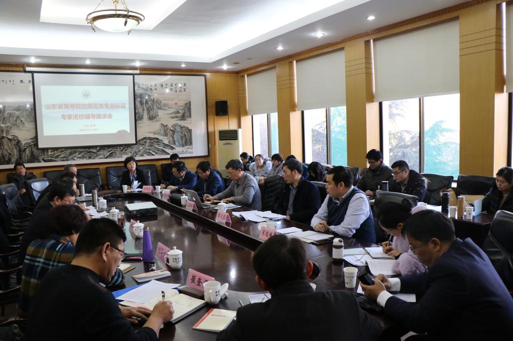 12月28日下午,由教育部评估中心和山东省教育厅组织举行的师范类专业认证工作专家进校辅导座谈会在我校千佛山校区文化楼三层会议室举行。受邀专家新疆维吾尔自治区教育厅原巡视员王长新、湖南师范大学副校长黎大志,山东省教育厅教师工作处处长刘宝君出席会议。山东省教育厅教师工作处相关负责同志,我校副校长满宝元,教务处、化学化工与材料科学学院相关负责同志和人员,以及山东省首批受理师范类专业第二级认证的其他4所高校,曲阜师范大学、齐鲁师范学院、聊城大学、山东英才学院的校领导,教务处、教学质量评估中心负责人,认证专业所在学院领导、系主任、骨干教师等共40余人参加了会议。会议由刘宝君主持。