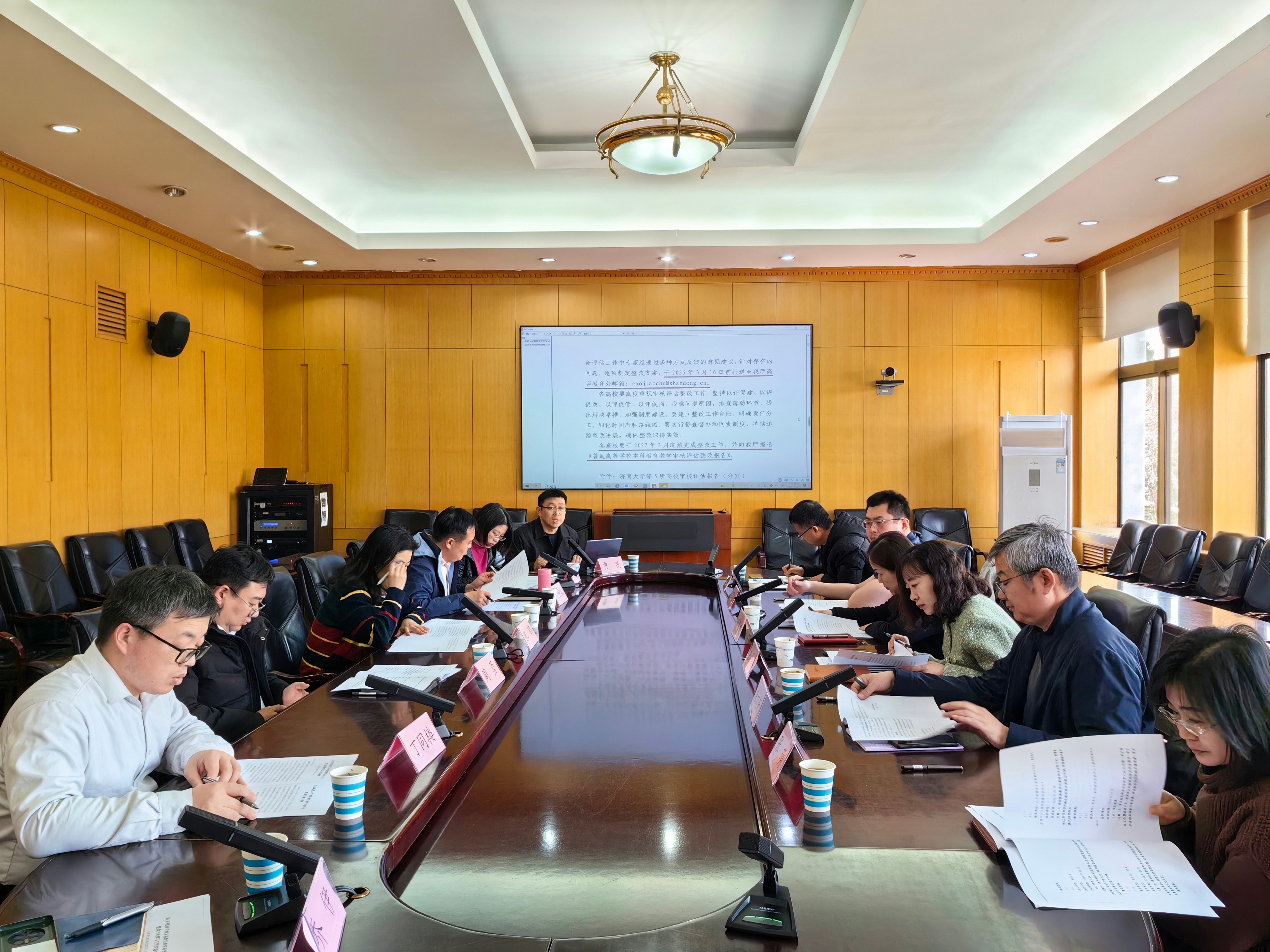 2月26日下午,学校在千佛山校区文化楼三层会议室召开本科教育教学审核评估整改方案研制工作会。会议由教师教学发展中心(教学质量评估中心)主任贾斐主持,相关职能部门负责人及评建工作专班人员参加会议。
