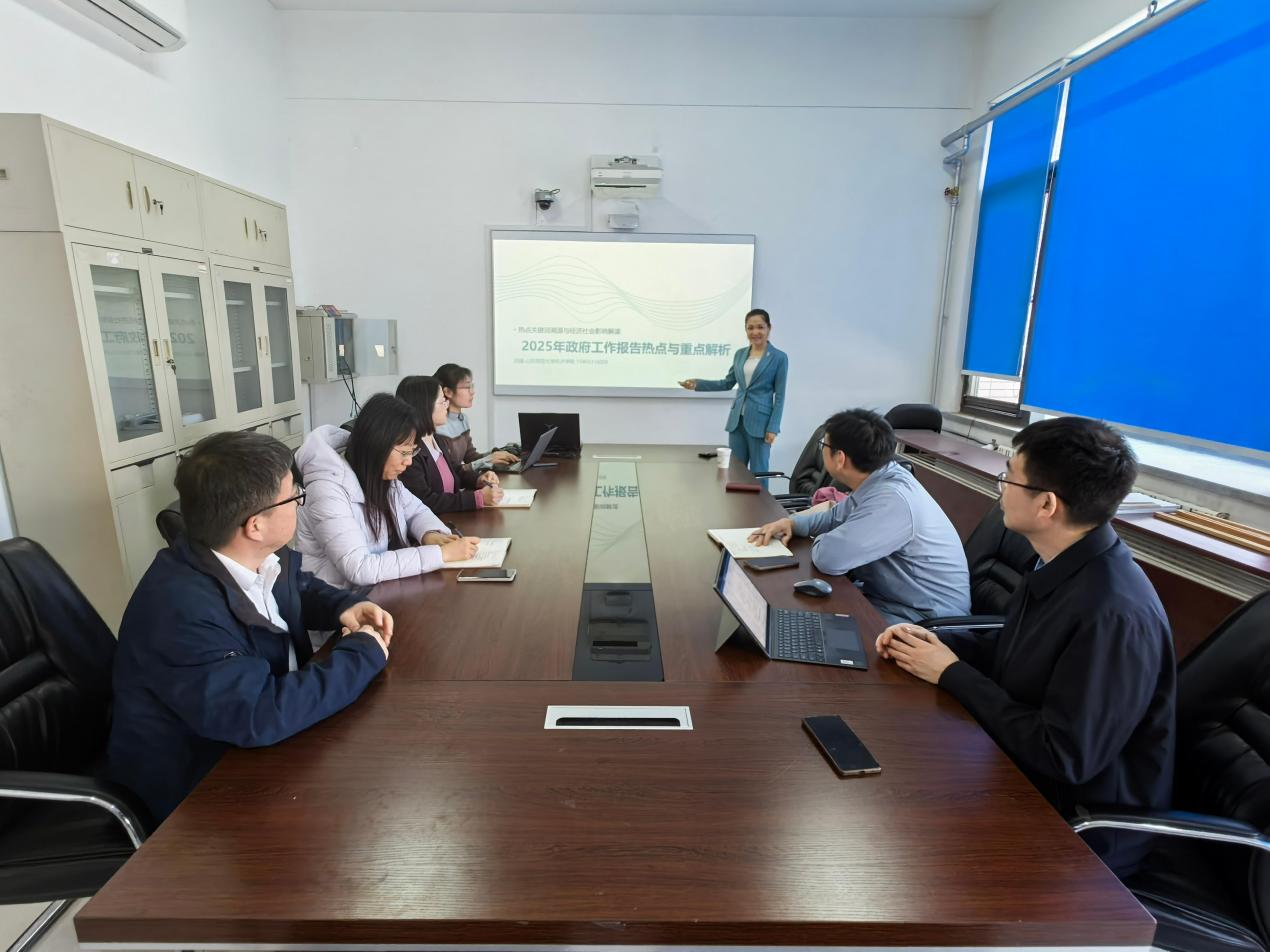 此次学习围绕2025年政府工作报告的政策取向、发展环境、重点领域、民生热点及未来展望展开深入讨论。在政策取向上,就我国经济发展基本趋势、今年经济社会发展总体要求等方面展开学习。关于发展环境,从国际看,世界百年变局加速演进,外部环境更趋复杂严峻,可能对我国贸易、科技等领域造成更大冲击。在重点领域方面,“人工智能+”引领的科技创新成为关注焦点,报告提出要因地制宜发展新质生产力,加快建设现代化产业体系。民生热点方面,就教育、消费、住房与投资四个方面展开了分析与讨论。