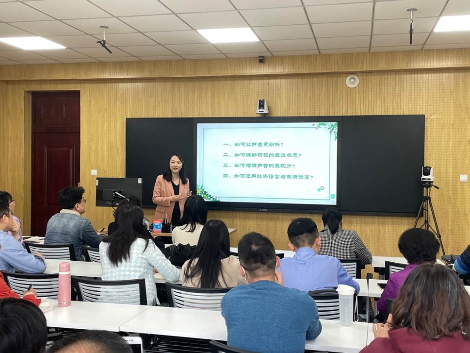由教师教学发展中心和文学院联合主办的“师说论坛·教师职业素养系列培训”第二场《教师口语表达技巧与训练》工作坊于4月27日在千佛山校区教学楼3247开展。此次活动继续由新闻与传媒学院程雅堃副教授担任主讲嘉宾,各学院近40位中青年教师参加了此次活动。活动由教师教学发展中心潘婷老师主持。