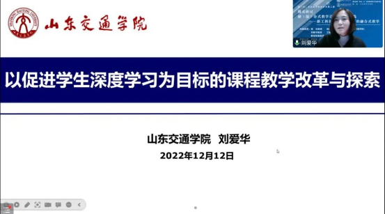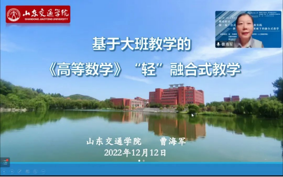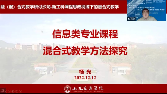 12月12日,我校举办融(混)合式教学研讨沙龙第二期“融(混)合式教学设计的创新实践——新工科课程思政视域下的融合式教学”活动。活动由教师教学发展中心(教学质量评估中心)、山东交通学院教务处、黄河流域“两省一区”高校教师教学发展研究院联合主办。本次活动邀请山东交通学院信息科学与电气工程学院杨光教授、工程机械学院刘爱华教授、理学院曹海军副教授作为嘉宾,由船舶与港口工程学院孟君晟老师主持,长青联盟高校近300余名教师参与。