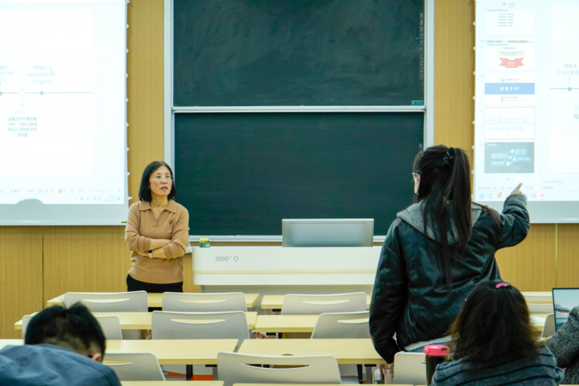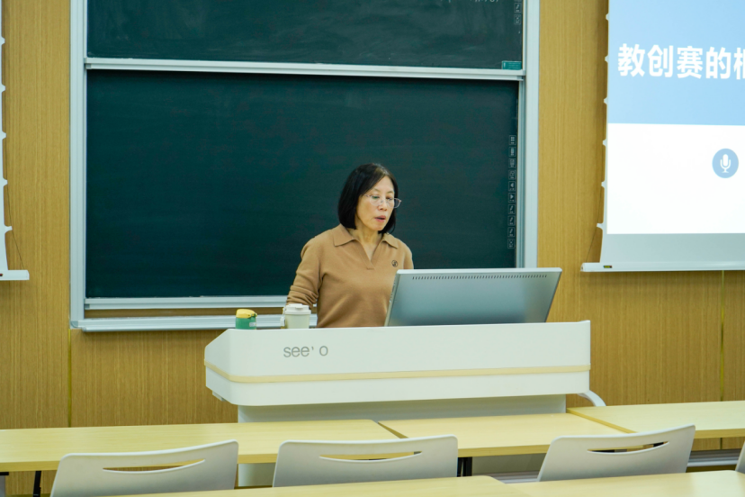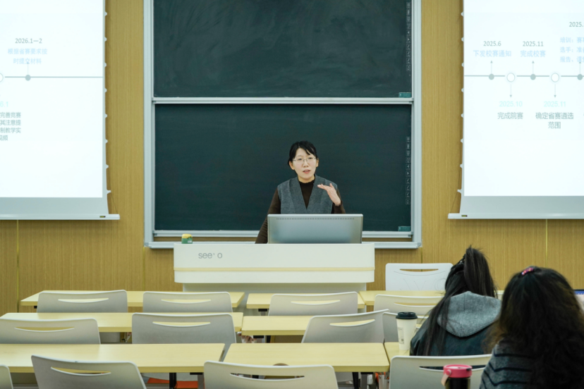 讲座尾声,教师教学发展中心潘婷总结。她首先梳理了教创赛的关键时间节点,明确了校级选拔、省级遴选及筹备的重要阶段节点,提醒老师们“教学创新是长期积累的过程,从现在起就要着手课程打磨、数据积累和材料梳理,为后续备赛打下坚实基础”,并强调了各阶段材料提交的具体要求与注意事项,助力老师们合理规划备赛节奏。