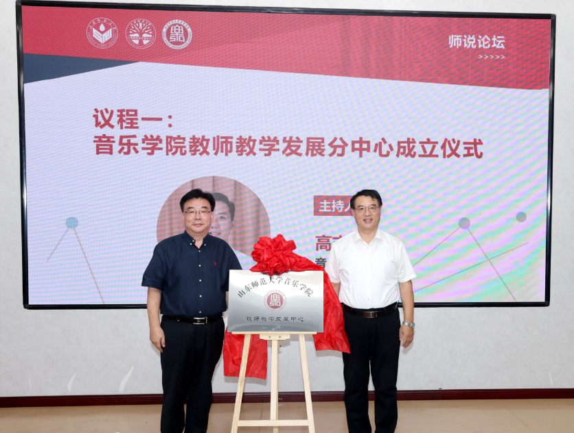 第一项议程为音乐学院教师教学发展分中心成立仪式,分中心主任高志毅介绍成立背景,公布分中心人员构成,汇报工作计划,由张茂聪、魏凡俭共同进行揭牌。