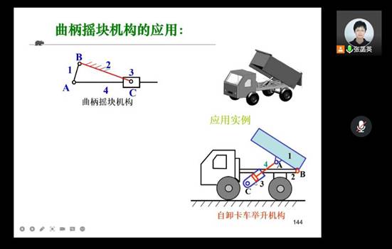 教学活动伊始,张菡英讲解了制药机械与设备课程。她在讲课过程中注重学习方法的教授,指出制药机械与设备的学习要注重知识点之间的连贯性。依托于生活实例,张菡英带领同学们走进课程学习,系统阐述了曲柄摇块系统及其应用。她聚焦于摇块结构及其应用,课程教学环节设计完整,采用多种媒体展开教学,同时指引同学们操作使用仿真软件以加深印象;使用程序动图演示,通过文字、图形、声音、动画等全方位、多角度展示制药机械的魅力所在。