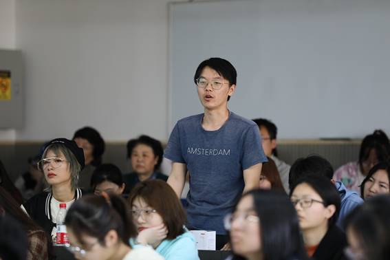 参加观摩课的年轻教师就自己在讲课中所遇到的困惑同魏老师进行了深入研讨。国际教育学院张琴凤老师结合魏建老师所说讲课要讲好教材,提出自己的疑惑:如何把杂乱无章的教材内容进行整合?魏老师就以不同的体裁作品为例作出回答。他认为,讲不同体裁的文学作品,既要讲出同一类文学作品的共性,还要挖掘每部作品的个性,以共性为基点,探求其独特性。魏老师还建议青年教师不要着急,不断吸收前沿的研究成果,日积月累,就会把看似杂乱无章的教材内容融会贯通,越讲越渗透。文学院翟春龙老师就学生需求与教师期待有时存在不对等、不同层次学生水平与教师讲授内容协调对接的问题,向魏建老师请教。魏老师表示,教师只能尽可能地激励学生,激发学生学习的内驱力。这要求教师在讲课过程中要悄悄设置一些驱动点。文学院张雪杉老师根据自身两届百优课的观摩体验,提出青年老师如何能够系统观摩优秀教师的整门课程等问题。与会老师还就其他一些问题行了交流与讨论。