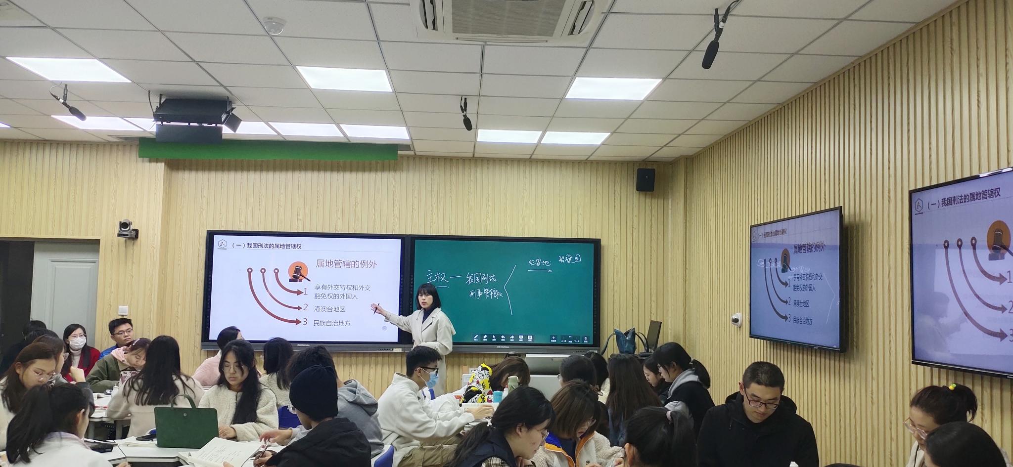 刘娜老师以社会热点“江歌”一案引入刑法的管辖权问题,通过历史演进的方式阐释空间效力的概念及管辖原则。她通过大量丰富的案例,将属地原则、属人原则、保护原则以及普遍原则清晰地展示给学生,同时将专业知识与家国情怀、爱国主义等思想政治元素进行了巧妙的融合,提升了课堂感染力。同时,注重引入信息化教学手段,增强同学们的学习兴趣,实现了积极的课堂互动,取得了很好的课堂反馈效果。