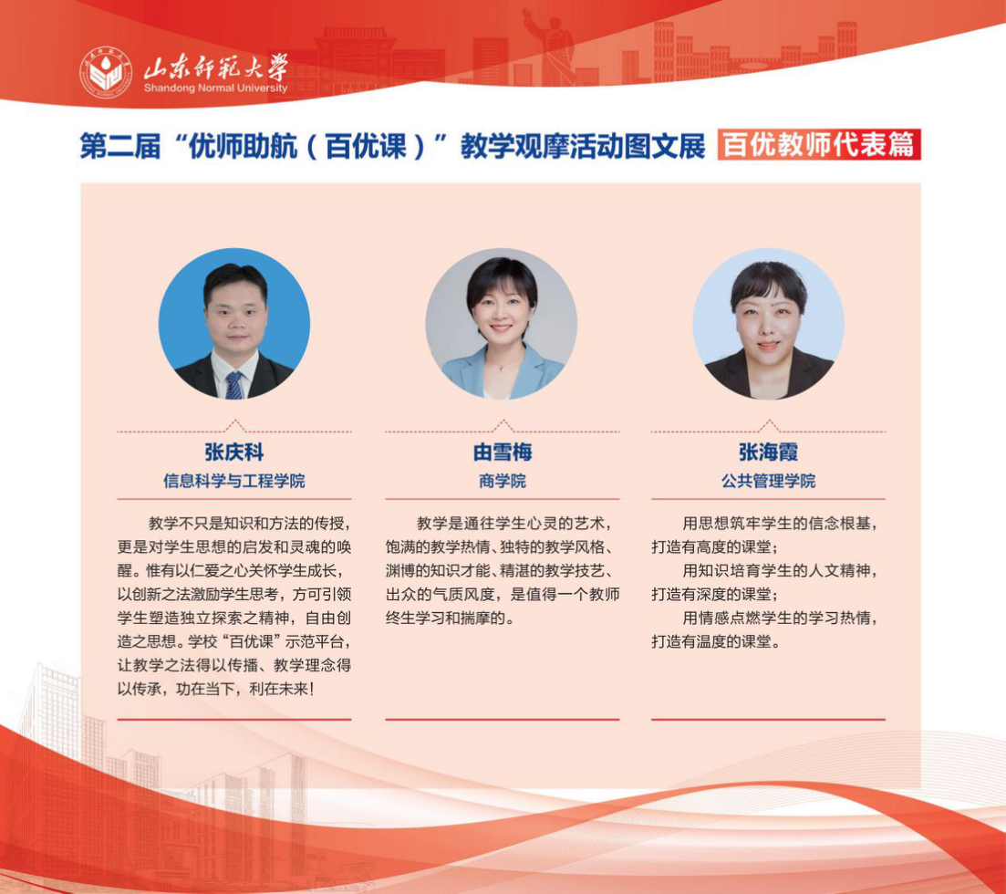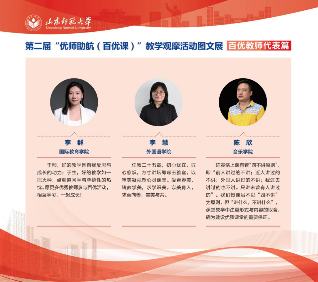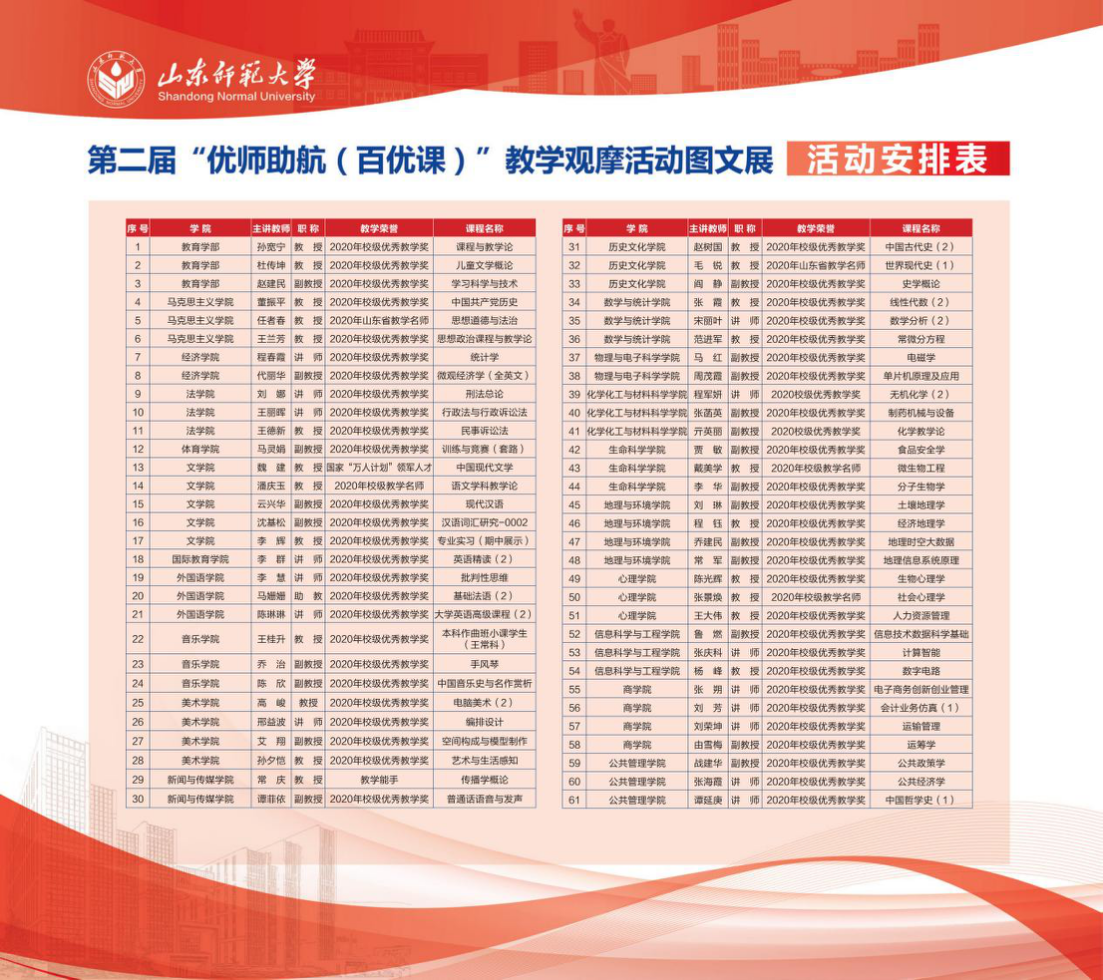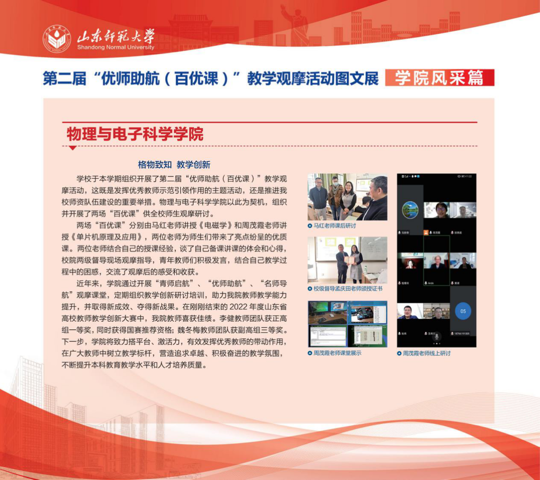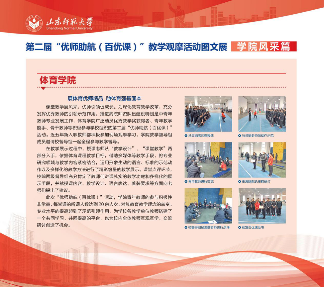 2022年3月至5月,学校推出了第二届“优师助航(百优课)”教学观摩系列活动。教学观摩活动突出了以学生为中心的教学理念,体现了课堂教学改革与创新实效,近五年入职的青年教师广泛参与,在全校师生中引发热烈反响,为更好地展示优秀教师风采,推广活动成效,现将活动精彩图文予以展示,同时在两校区宣传栏同步展出。