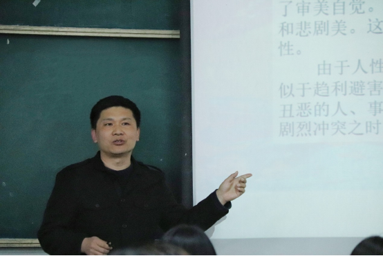 汇报结束后,李红春对两位同学的精彩讲授做了充分肯定,并指出了两位同学的观点中存在着潜在的对话与争鸣,即人类是否在整体上存在一种审美偏好,如果存在,这种偏好来自对自然的承继,抑或是一种社会建构。就此,李红春指出本节课所要讲授的马克思的“美的规律”思想恰好可以为这一问题找到答案。由此,以问题为导向,李红春运用视频、图片、提问等多种教学手段和方式,对马克思“美的规律”思想进行了解读。整个过程层层深入、环环相扣、一气呵成,既在理论层面深化了对马克思人类本质观的认识,将其从社会发展史扩展到自然进化史,而且在直观层面将马克思“美的规律”思想落实在对动物审美本能以及人类实验艺术的分析之上。本次课教学手段多样,教师亲和度高,课堂气氛积极活跃。李红春以马克思如何在生产、劳动与美之间建立起联系为思考题,为下节课做了铺垫。