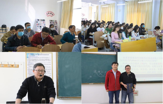 下午,马学强老师以《信息技术数据科学基础》第六章“程序流程控制”为主题,结合前几节内容详细介绍了在python编程语言中如何进行程序的流程设计。课堂中,马老师先演示了解决“鸡兔同笼”问题的程序,进而引出程序的三大流程结构:顺序结构、选择结构和循环结构。课堂内容充分结合生活实例,展示大量简单例题,通过师生讨论、程序演示等方式让晦涩的知识更加清晰直观、通俗易懂。马学强老师的整体授课流程展现出深厚的理论功底与娴熟的授课技巧,其诙谐幽默的教学风格更是受到学生一致好评。课后,宋信敏副院长向马学强老师颁发了荣誉证书。