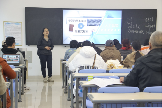 第二节公开课的课堂展示环节,随培培老师主讲的《人工智能概论》课程,以“启发式搜索”为主题,以日常生活中发现丢了东西后如何寻找作为情景导入,引发学生的思考,又以热映电影《找到你》中找孩子的片段为导入引出搜索的概念,并以数字华容道作为教具,进而引出启发式函数的建立过程。最后通过小结引导学生面对众多选择时应该如何做出最佳选择,将思政元素融入课堂教学,在潜移默化中提高学生的道德水平。