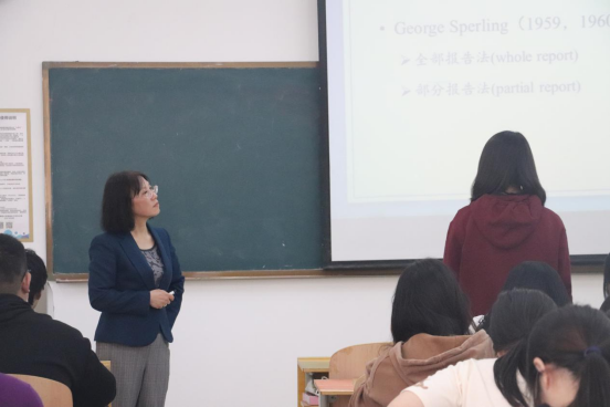 课堂教学伊始,先由毛伟宾讲述认知心理学《记忆的结构及模型》一课,授课过程丝丝入扣。她通过让学生通过线上平台进行提问,以实时掌握学生的听课效果,及时解决课堂问题。第二堂课,赵卫国采用观看经典视频素材和小组讨论的方式来授课《深度的现象学访谈模式》,整堂课氛围活跃、互动频频,学生收获颇多。