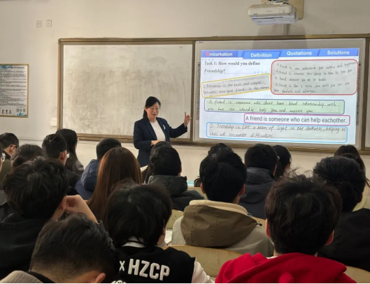2024年3月21日上午,外国语学院在长清湖校区文渊楼C区150教室举办了第四届“优师助航”第一场教学观摩活动。此次活动由高燕老师担任主讲教师。观摩课结束后,学院在B区550教室开展教学研讨活动。副校长周珊珊,教师教学发展中心(教学质量评估中心)主任贾斐,校级督导王金娥、外国语学院书记岳希亮、副院长张媛、院级教学督导组组长蒋斌,以及20余位青年教师参加了此次活动。