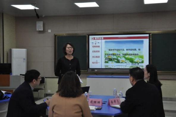 高燕老师讲解结束后,校级督导王金娥教授对此次观摩活动进行了点评。她从高燕老师上课思路、课程框架结构、课堂把握能力、学生上课态度和课堂反馈程度等方面对此次活动给予了肯定,同时也对课堂后续的改进提出了宝贵的建议。学院督导组组长蒋斌副教授同样肯定了主讲教师的教学水平和理念,认为高燕老师深耕了教学内容,深入挖掘了语言教学的规律,跳出了知识传授的层面,进一步提升了学生们的综合素养。其中,贾斐主任指出,在教学理念方面,高燕老师真正贯彻了以学生为中心的理念;在教学内容方面,真正做到了教材与时政内容的结合;在教学设计方面,真正调动了学生的课堂参与积极性;在教学技术方面,熟练运用科技成果,进行了混合式教学;在教学思想方面,切实的将思政思想融入到课堂中,充分体现了中国传统文化的精神。最后,他表达了对青年教师们的期望,希望他们能够在未来的教育事业中取得辉煌的成就。其他参与教学观摩的青年教师也交流分享了自己的收获与感悟,为自己此后的教学提供了更多的经验。