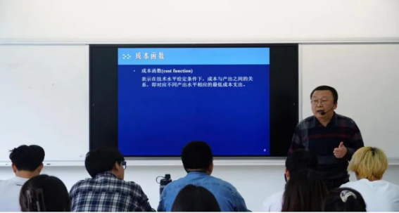 在课堂展示环节,李老师在多媒体与板书结合使用的基础上,巧妙设问,回顾旧知,引入对经济学原理的授课。课程中,李老师数形结合,循循善诱,剖析短期成本章节的概念及其相互关系,有效培养学生的经济学学科思维。他注重教学相长,确保学生在学习中保持思考,实现学与思的并进。