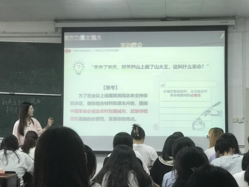 张伟丽老师讲授的课程是毛泽东思想和中国特色社会主义理论体系概论,该堂课根据文学院学生专业特点,以诗词导入,引出新民主主义革命道路的课程主题,围绕寻路、开路、筑路三方面内容展开讲解。在讲授过程中,张伟丽老师巧妙运用问题引导,层层递进,并结合自身感受,用生动形象的语言将理论知识转化为学生易于接受的观点。张伟丽老师通过“雨课堂”线上平台开展课堂互动,充分调动了学生的积极性。此次授课展现了张老师优秀的教学能力和饱满的教学热情,受到师生们的一致好评。