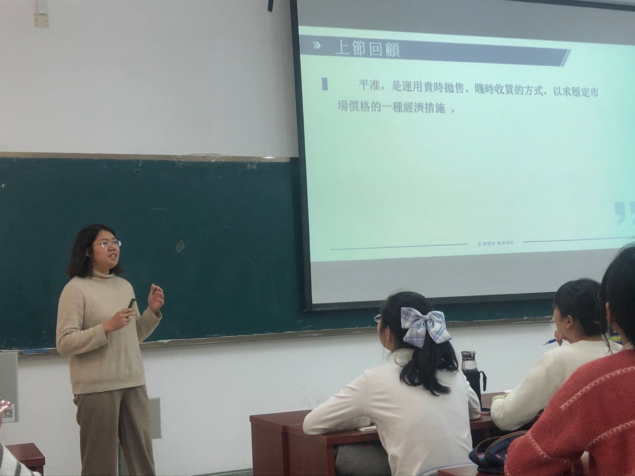 最后一场公开课由青年教师刘佳琳进行讲授。在尹承老师指导下,刘佳琳老师以历史要籍《史记·平准书》选文为题,介绍了汉武帝时期实行“均属平准”“算缗告缗”“盐铁官营”等经济措施的社会背景,对西汉前期与匈奴关系进行了系统梳理,并借对公孙弘、张汤等人物的介绍,启发学生辩证评价历史人物。在串讲选文基础上,对相关古汉语知识要点和史实进行补充。本堂课积极引导学生分享自己的见解,充分参与到课堂互动中,促进了学生们独立思考能力的提升。