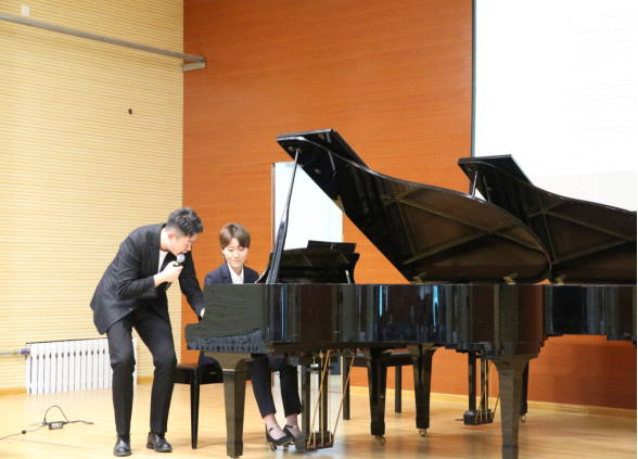 本次公开课分为课堂展示和课后研讨两个环节。在课堂展示环节吕欣锴和他的钢琴课学生2021级大一新生高畅,通过课上对贝多芬奏鸣曲OP.22 NO.11的分析,并且深入剖析了作品结构以及音乐内涵,使学生们更加深刻感受到了作品所诠释的音乐语言。在学生的演奏过程中,对学生在演奏中出现的技术技法问题进行详细的指导,提高学生的演奏技术,更加精准地对作品进行诠释,同时,通过对作品的作曲家,创作背景,创作风格等与学生进行分析交流,让学生对作品的情感表达也有了更深一步的了解。