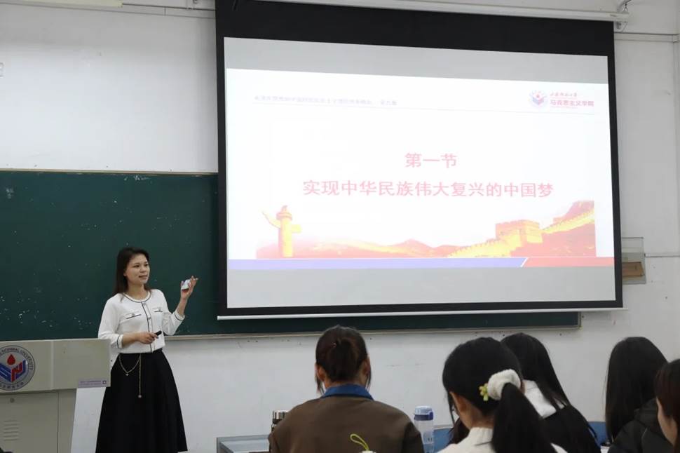 本次公开课的内容为《实现中华民族伟大复兴的中国梦》,分为课堂展示、教学反思、交流研讨三个环节。在课堂展示环节,丁凌老师以中国共产党是史上最牛创业团队导入要讲授的主要内容,并通过融入诗词等传统文化知识来加深学生对中国梦的理解和认识。课堂展示内容逻辑清晰,重难点突出,教态自然从容,语速适中,课件设计精美,师生互动良好。