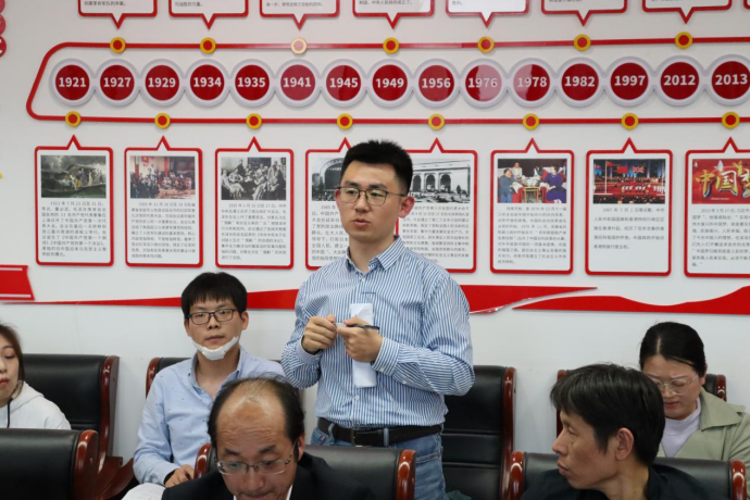 课堂展示结束后,参加公开课的老师们来到崇德楼404会议室开展座谈会,帮助新开课教师开展教学总结和反思,赵树国主持座谈。朱亚非教授充分肯定了张凯成老师表现出的教学能力和素养,并鼓励青年教师关注教学,提升教学技能。楼建军教授充分肯定了张凯成老师注重运用历史地图培养学生时空观念和注重课堂学术性的做法,他建议新开课教师更多使用直观的图片展现历史事件,帮助形成直观印象并引发学生思考。李伟教授从普通话、教学仪态和把握学术动态等方面充分肯定了张凯成老师的基本教学素养,并就课件设计和课堂内容详略取舍给出了可行建议。张德安老师结合自身基础教育工作经验对课堂呈现方式、课堂互动等方面进行了点评。潘婷老师希望青年教师多听课、多交流、多反思,关注教学、用心教学,切实提升自身教学能力,促进教师教学发展。赵树国副院长充分肯定“启航1+1”活动对青年教师快速提升教学能力的重要意义。他对青年教师寄予厚望,希望大家在教学中勤学习,常反思,鼓励大家参加各类教学竞赛帮助提升和锻炼自身教学能力。其他学院督导组成员和参与听课的青年教师也对本次公开课进行了点评。张凯成老师在研讨中总结了自己的教学过程,表示将在以后的教学中不断总结反思,向优秀教师学习,不断提升自身教学水平。