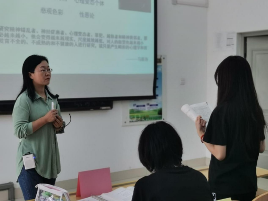 本次观摩活动分为线下授课和点评两个环节。在教室授课环节中,邹丽娟授课《人格心理学》,悉心准备授课内容、精心设计课堂环节,为学生讲授精神分析和行为主义学派相关内容,通过引用生动故事介绍马斯洛需要层次理论,循循善诱、深入浅出,使得学生能够深刻理解专业知识。整节课氛围活跃、互动频频,为现场听众留下深刻印象。