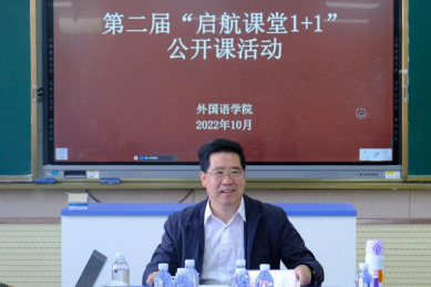 王传奎副校长进行了总结发言。王校长充分肯定了外国语学院近年来在教学和科研工作中取得的成绩。他指出,教师的第一目标是教学,一定要着眼于培养人,做好教学工作既是教师职业发展的需要,也是教师职责所在。王校长充分肯定了启航课堂1+1活动,认为这样的公开课对青年教师的成长大有裨益。王校长结合二十大精神,对教师们提出几点要求:一、党的二十大提出社会主义现代化、中华民族伟大复兴的建设目标,这些目标与每个人密切相关,外院教师要勇于承担起自己的重要职责,不断学习和研究,并用所学教好学生。二、教师在教学过程中要注重育人导向,教师思想觉悟高,专业能力强,才能培养好学生,学校、学院都要形成凝心聚力的氛围,多做实事,履行好自己的职责。三、教师要努力提高科研能力,一方面注重学科前沿的科学研究,另一方面也要注重教学方面的研究,两者相辅相成;教师应该积极创新,共同推动学院发展。