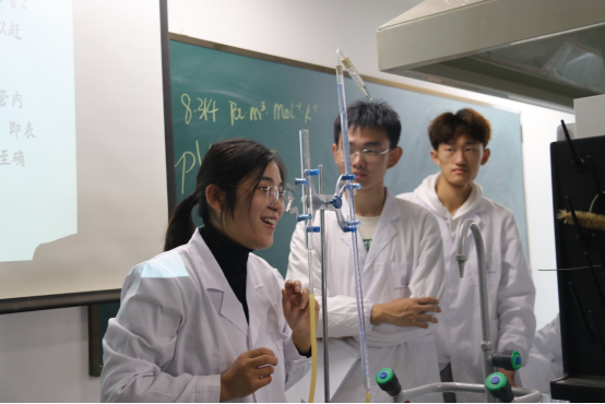 本次启航课程活动由教学展示和课后研讨两部分组成,首先由授课教师张闪闪带领化学本2206班级同学学习了《气体常数测定》这个实验。课程一开始,张闪闪带领同学们温习了气体常数的数值以及其求值公式,为此次实验的开展提供了理论基础。在接下来的演示实验过程中,张闪闪老师认真细致地向同学们展示了实验的全部过程,并提出了很多有关环保、安全以及实验严谨性等方面的注意事项,为同学们提供了条理清晰,层次分明,重点突出的授课内容。师生互动紧密,课堂气氛活跃,寓教于行动。在结束演示过程后,张闪闪让同学们动手完成实验,同学们热情高涨,也从课程中收获了很多。