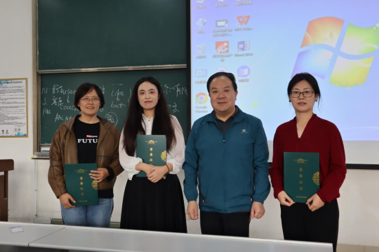 课堂展示结束,常庆院长为张薇老师、指导教师王宏老师、杨娟老师颁发荣誉证书。