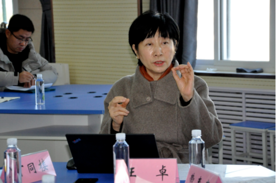 课后研讨环节由副院长张媛主持,各位专家老师分别发言。王卓院长首先点评,她对本次公开课给予了高度的评价,充分肯定了王丽娜的授课水平。随后她从理论与方法及语言教学目标等方面提出了宝贵的建议,特别指出语言课程要培养学生们的人文素养和全球素养。最后,她指出了王丽娜在授课中出现的几个较为明显的问题,并鼓励老师们积极使用新兴教育技术。