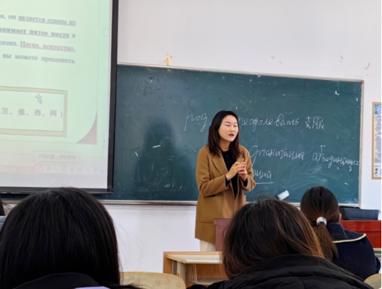 主讲教师王丽娜此次教授的俄语阅读(2)是围绕第五单元“学俄语吧!”一文开展的。王老师对课堂各环节进行了巧妙合理的设计:开头以回顾内容的方式检验学生的俄语输出程度和文献检索情况;讲解过程中,授课人坚持以读、译、讲、述、论“五位一体”的思路开展俄语阅读训练,借助思维导图凝练语篇内容,方便学生从整体上把握语篇架构和内在逻辑,通过合作性、探究性的学习活动,引导学生拓展性思考中国俄语翻译家高莽先生的事迹,抓准读写契合点,以读导写,培养学生的俄语写作能力和用俄语讲好中国故事的能力。在课堂教学建设过程中,王丽娜老师遵循了注重语言与思政育人协同并进的教学宗旨,整堂课图、视、文有机结合,课件制作丰富,语言教态有亲和力,是一次全方位的课堂教学展示。
