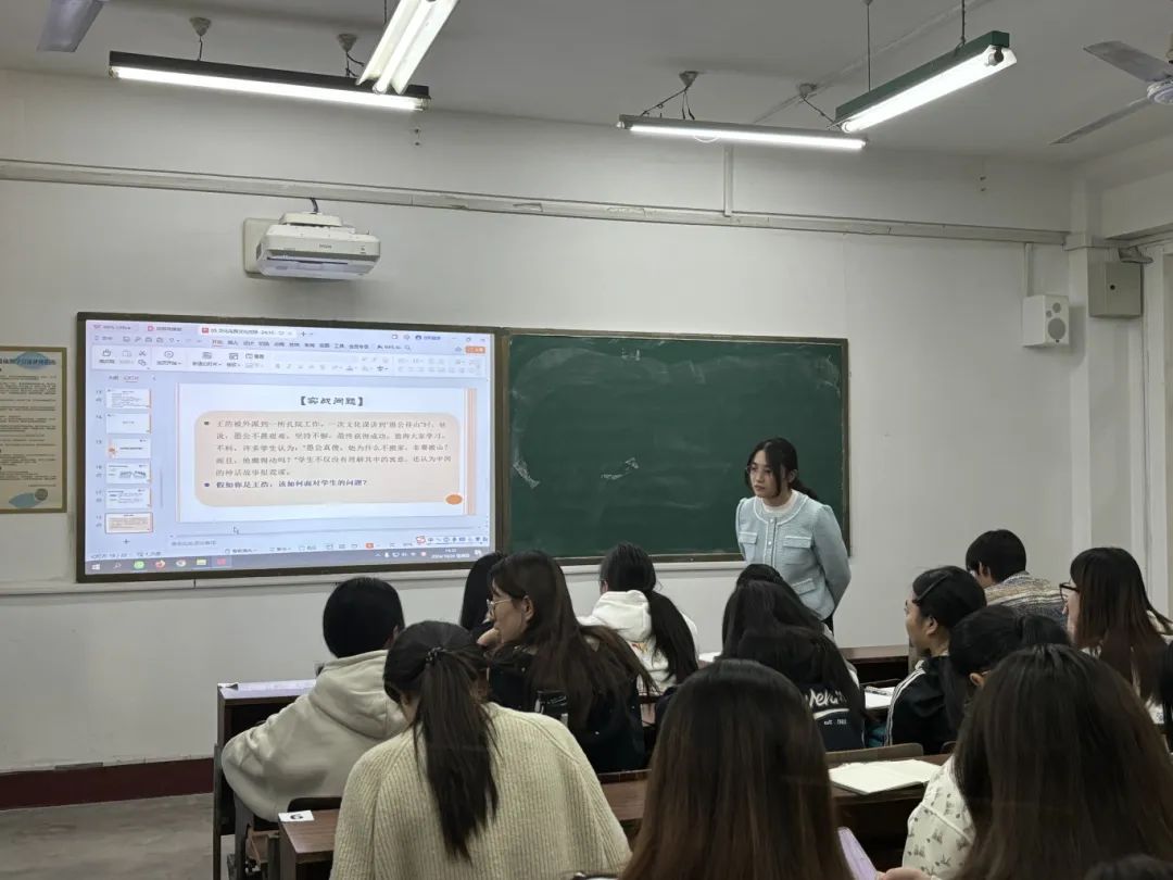 马茂祥教授进行了深度点评,他认为黄爽老师授课风格活泼,教姿教态良好,教学设计架构清晰。同时,也提出了宝贵意见,如需要细化PPT设计、明确概念界定、选取更具对应性和完整性的案例等。随后,刘艳平副教授和徐晶晶博士作为指导教师分别进行了精彩点评。刘艳平认为,课堂的导入环节应贴合国际中文教师的要求,明确教学目标,提升教学逻辑性。徐晶晶认为,教师需要给予学生更多的反应时间和积极的反馈。文学院副院长邹强指出,课堂应增加板书部分,课后学习材料也应更具专业性。郭文娟老师针对案例课的教学,在课堂设计、教学理念、案例选取、课堂氛围、授课节奏等方面给予了全面的指导。韩立坤、盛蕾、陈松林等各位老师还针对刚刚结束的“汉教英雄会”教师组和学生组比赛进行了全面的复盘分析。