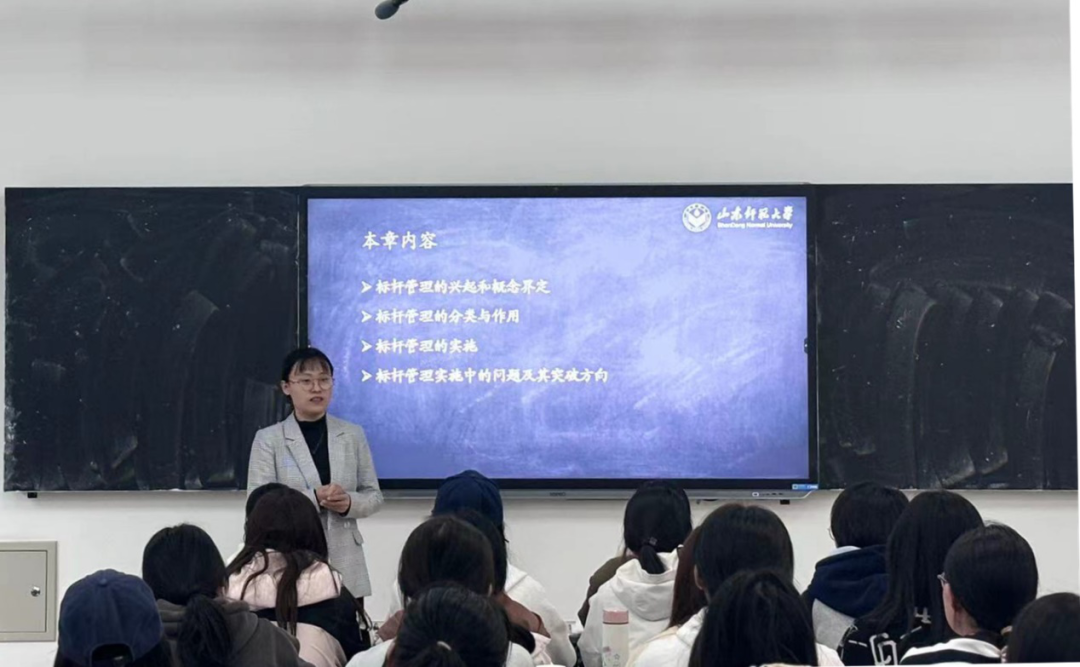 公开课活动分为课堂展示和课后点评两个环节。在课堂展示环节,马亚民采取板书与PPT结合的授课方式,将会计理论知识与实际问题相结合,向学生介绍了借贷记账法的记账规则及应用。张淑洁从榜样“雷锋”的案例出发,引发了学生对“标杆”和“标杆管理”等相关概念的思考,同时结合施乐公司的案例,带领学生深入探讨了标杆管理方法的兴起与发展历程。点评环节中,教学督导专家对两位教师的整体教学水平给予了肯定,同时针对教学过程中存在的问题提出了意见建议:希望两位教师能够继续保持认真备课的态度,优化课程结构设置,提高课程的高阶性,帮助学生能够更好地掌握和应用教学内容;重点内容的安排要循序渐进,引导学生逐步深入;同时,思政元素的嵌入应当自然流畅,通过实际案例或讨论,引导学生树立正确的价值观,增强其社会责任感;此外,课件中可以适当加入动画,以动态形式展示复杂的概念和过程。