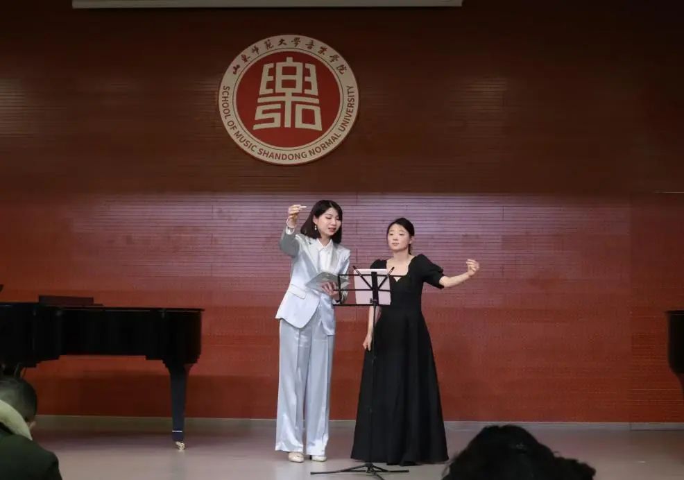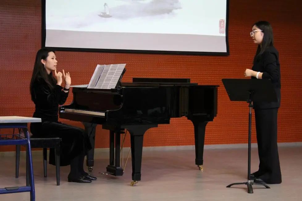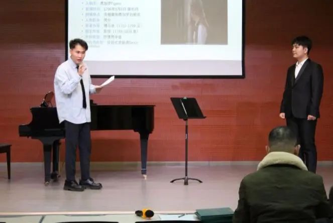 李肖老师从多个方面为学生提供了专业的演唱指导,现场教学中,李肖老师对学生演唱的《江城子•乙卯正月二十日夜记梦》的咬字发音进行了规范,并对该首作品进行深入地解读分析,这首悼亡词短短十几字便向我们展现苏轼丰满细腻的情感,催人泪下,写出的不仅仅是苏轼与王弗的爱情,更写出对亡妻真挚的情感和无尽地思念。最后学生演唱老师指导后的版本,表演更加出色。