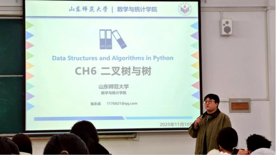 11月18日,数学与统计学院于长清湖校区文渊楼 B218 教室成功举办“青师启航”1+1公开课活动。本次公开课由学院青年教师崔永成主讲,讲授内容为《二叉树与树》,教学督导杨泽忠教授、学院工会主席朱爱玲教授、实验中心主任张永新副教授以及学院部分青年教师参加观摩和教学研讨活动。