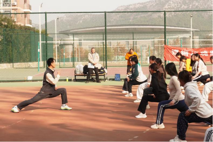 焦胜立老师的武术(一)公开课,以“夯实基础+培养品格”为双主线:先通过热身、基本功复习巩固学生武术功底;再聚焦“武术初级长拳第一段1-6式”,拆解左手格挡冲拳、弹腿冲拳、马步冲拳等动作细节,帮助学生精准掌握套路;最后通过分组练习激发学生互帮互助的团结性。针对大一新生“武术基础薄弱、体育参与度低”的学情,课程适当增加基本功练习频次,循序渐进提升学习强度。导师团赵发田、张锋老师及督导组领导肯定其教姿教态端庄、动作示范规范,同时建议将难点动作分解练习纳入教案,注重行进间踢腿的队形整齐度,也要注重将思政融入课堂,善用口令与武术礼仪,培养学生整体精神面貌。
